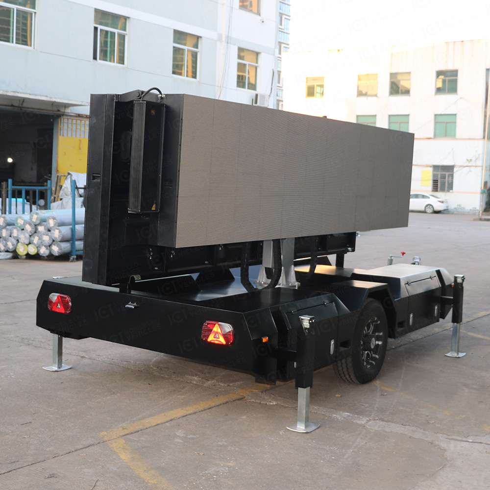 EF8NE型新能源LED拖車集成LED大屏升降(1300mm行程)、折疊(180°上下折疊)、旋轉(zhuǎn)(330°手動(dòng)旋轉(zhuǎn))功能于一體,可根據(jù)現(xiàn)場(chǎng)環(huán)境需要,調(diào)節(jié)LED屏幕高度跟角度,確保led大屏處于觀賞中間位置,進(jìn)一步提升傳播效果,尤為適合在鬧市、集會(huì),戶外運(yùn)動(dòng)賽事現(xiàn)場(chǎng)等人流密集的場(chǎng)合應(yīng)用。